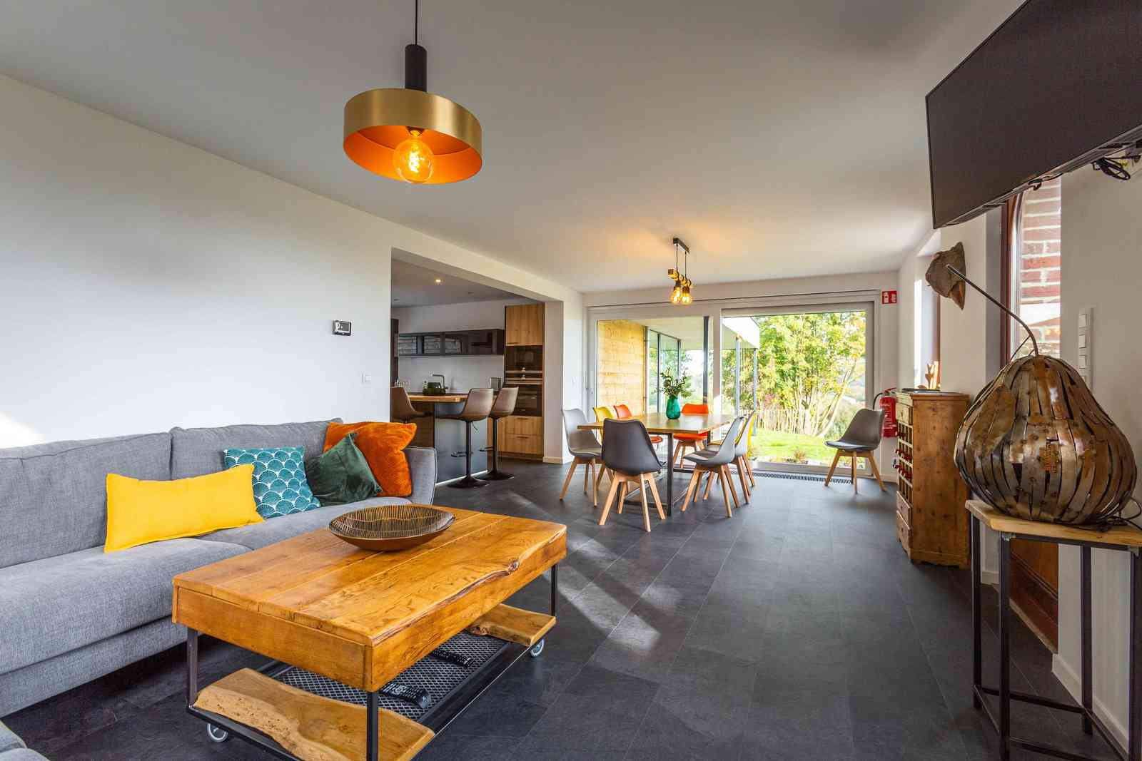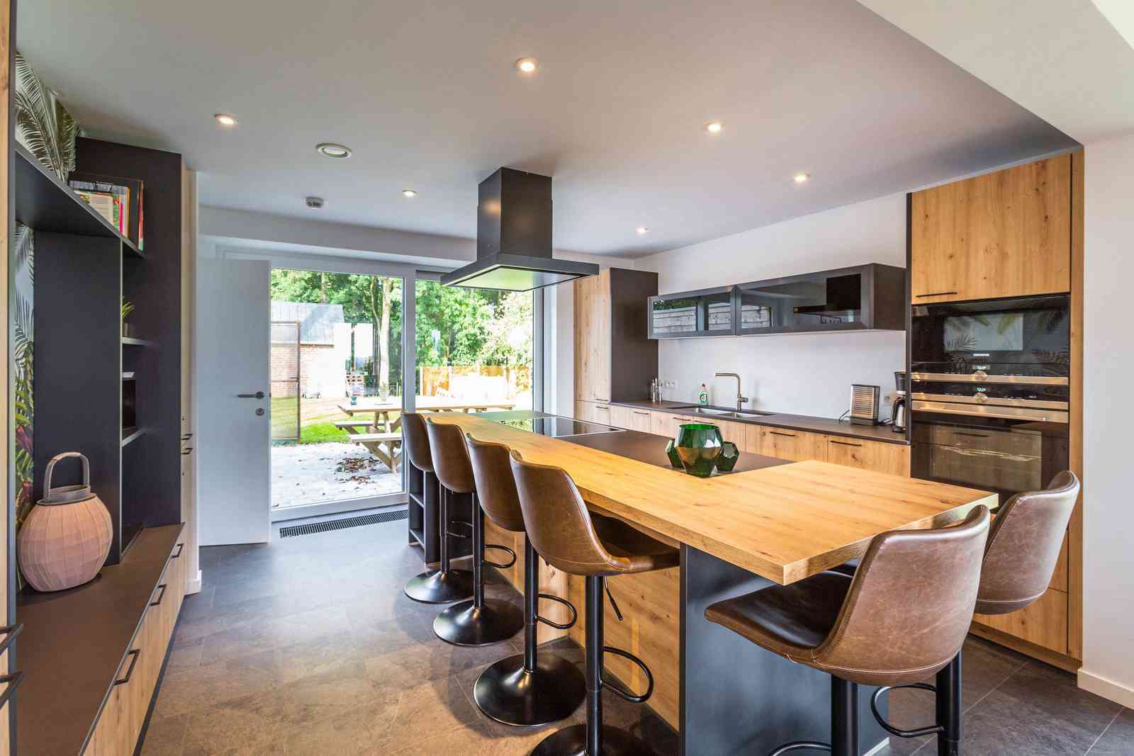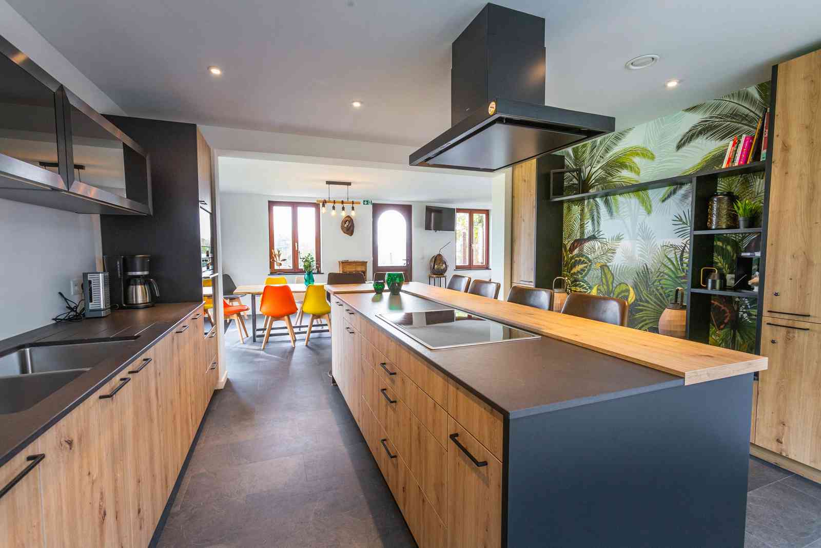 Réservez Le gîte dispose d'une magnifique cuisine contemporaine dont l'îlot central, ouvert sur la salle à manger et le salon, confère au lieu le charme et convivialité que les hôtes ont voulu apporter à cet espace.